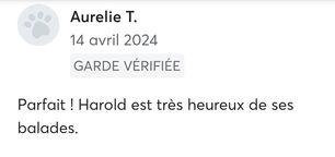 Le tarif comprends, mon temps de transport, 2 heures de garde et une balade en moyenne toutes les 2/3h de garde.